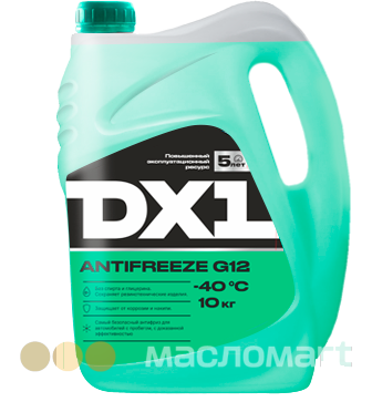 нтифриз торговой марки DX1 изготовлен на основе этиленгликоля и обладает выдающимися антикоррозионными свойствами. Не агрессивен по отношению к резинотехническим изделиям. Отлично смазывает детали системы охлаждения, предотвращает их преждевременный износ. Содержит специальные присадки, предотвращающие вспенивание, благодаря чему исключается перегрев двигателя, присутствие флуоресцирующего красителя позволит легко обнаружить место утечки. Использование антифриза DX1, содержащего сбалансированный пакет присадок, продлевает срок службы деталей системы охлаждения автомобиля в 1,5-2 раза.