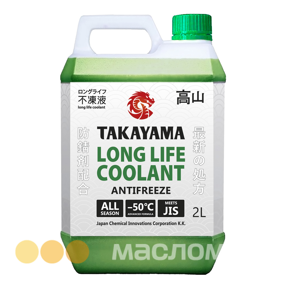 Лобридная жидкость охлаждающая низкозамерзающая «TAKAYAMA LONG LIFE COOLANT GREEN -50» на основе высокоочищенного этиленгликоля и специального пакета присадок, состоящего в том числе из ингибиторов коррозии на основе органических кислот и фосфатов (P-OAT — Phosphated - Organic Acid Technology). Не содержит в составе силикатов, нитратов, боратов и аминов. Температура застывания до -50 °C. Температура кипения 111 °С.