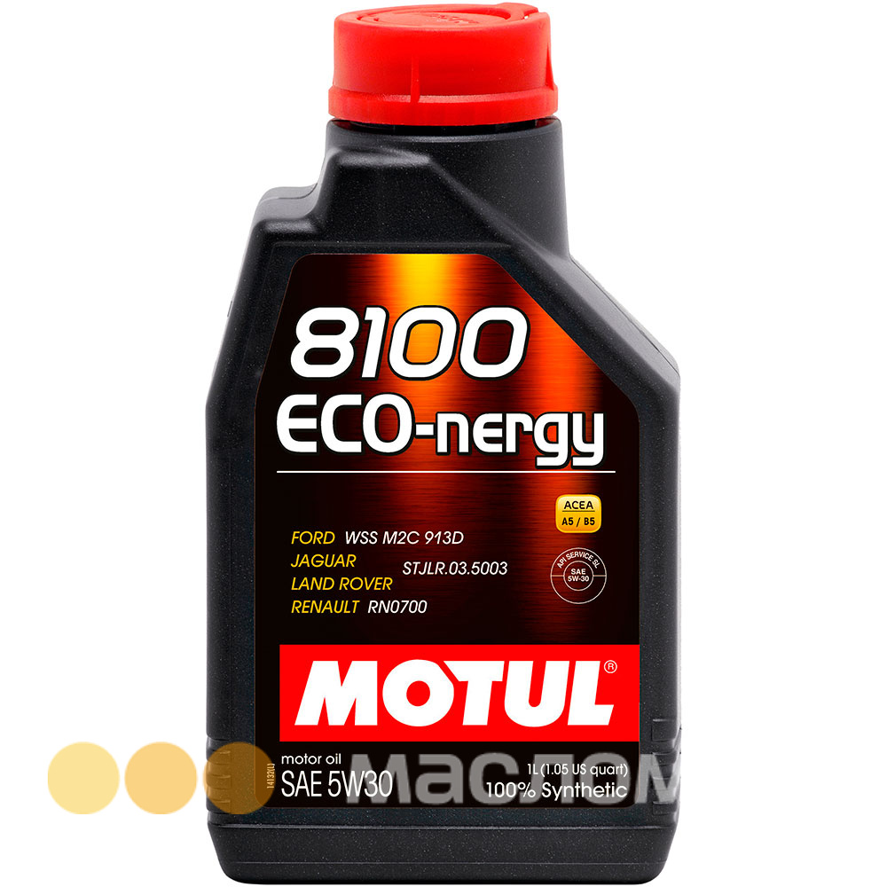 - MOTUL 8100 ECO-nergy 5W-30 имеет синтетическую базовую основу и специальный комплекс присадок, снижающих трение. Это обеспечивает высокую стойкость масляной пленки, уменьшение трения в двигателе, стабильное давление масла и уменьшение тепловой нагрузки.