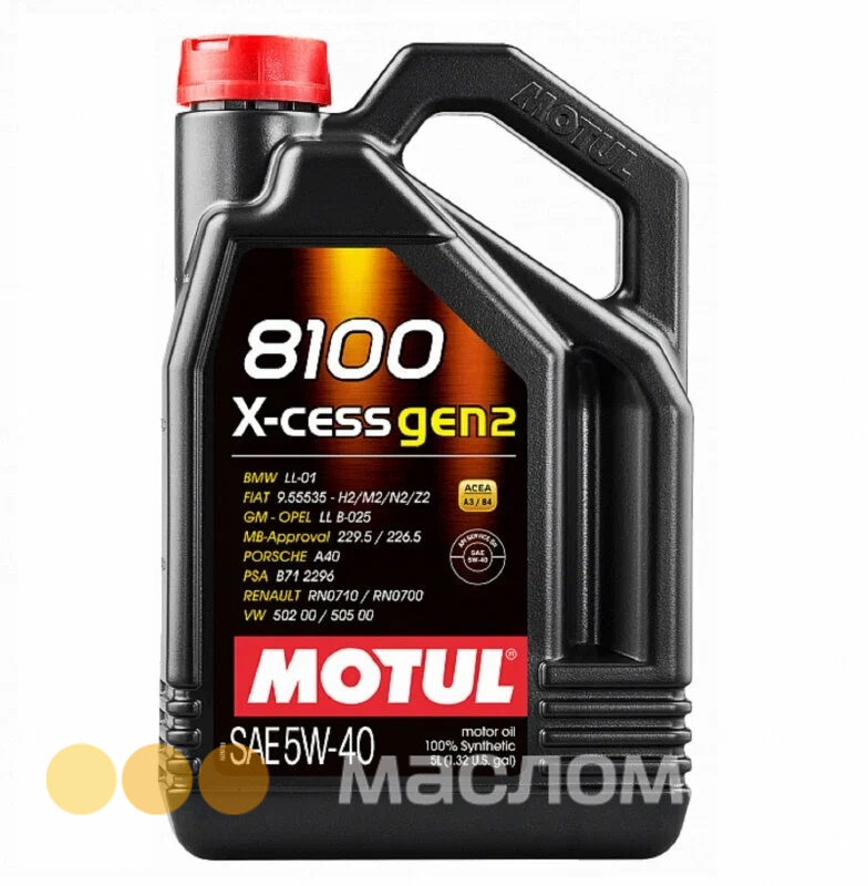Высокотехнологичное 100% синтетическое моторное масло, специально разработано для современных бензиновых и дизельных двигателей легковых автомобилей, обладающих большой мощностью и объемом, т.ч. оснащенных турбонаддувом и непосредственным впрыском. MOTUL 8100 X-cess gen2 5W-40 имеет одобрения автопроизводителей, что позволяет применять его и в гарантийный период обслуживания. Предназначено для двигателей, работающих на любом типе топлива: бензин, дизельное топливо, сжиженный нефтяной газ (LPG), этанол, биодизель.