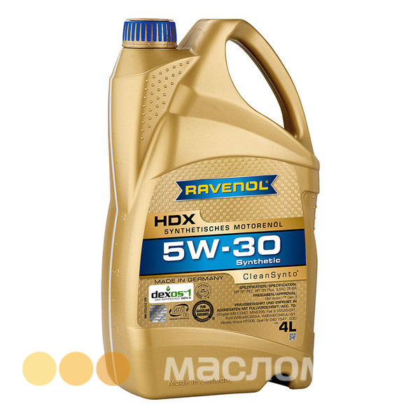 RAVENOL HDX SAE 5W-30 – синтетическое легкотекучее моторное масло, изготовленное с применением технологии CleanSynto® для бензиновых двигателей с и без турбонаддува, например, двигатели GDI с прямым (непосредственным) впрыском топлива.