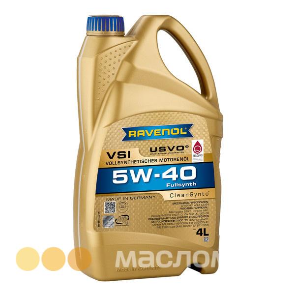 RAVENOL VSI SAE 5W-40 – полностью синтетическое моторное масло на основе полиальфаолефинов (ПАО), изготовленное с применением технологий USVO® и CleanSynto® для легковых бензиновых и дизельных моторов с и без турбонаддува и прямым впрыском топлива.
