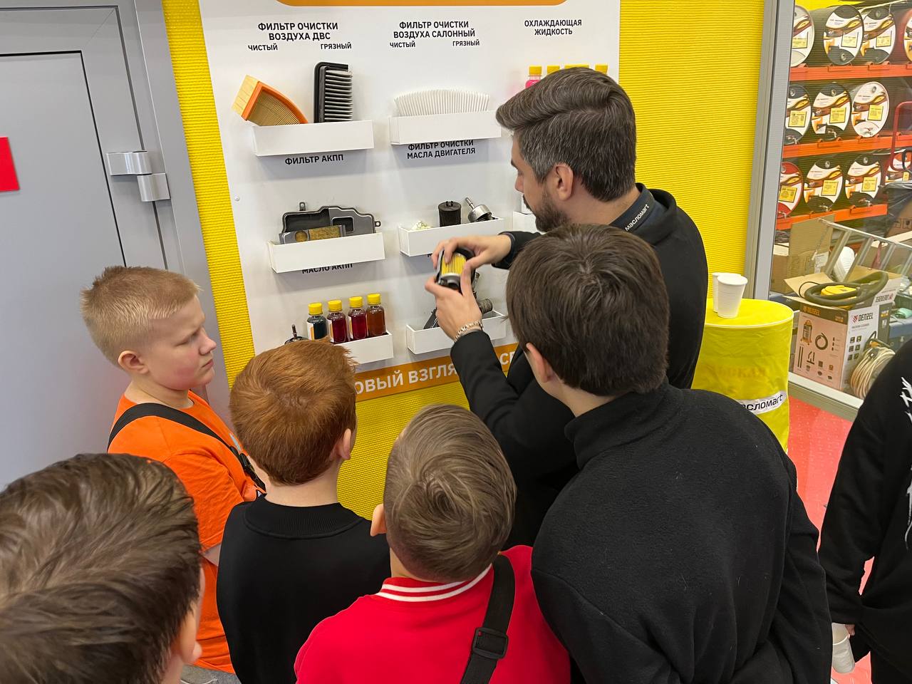 Дети получили возможность принять участие в нескольких увлекательных мастер-классах. Они могли наблюдать и задавать вопросы специалистам по замене масла, узнать о важности правильного обслуживания автомобиля для его долговечности и безопасности.
