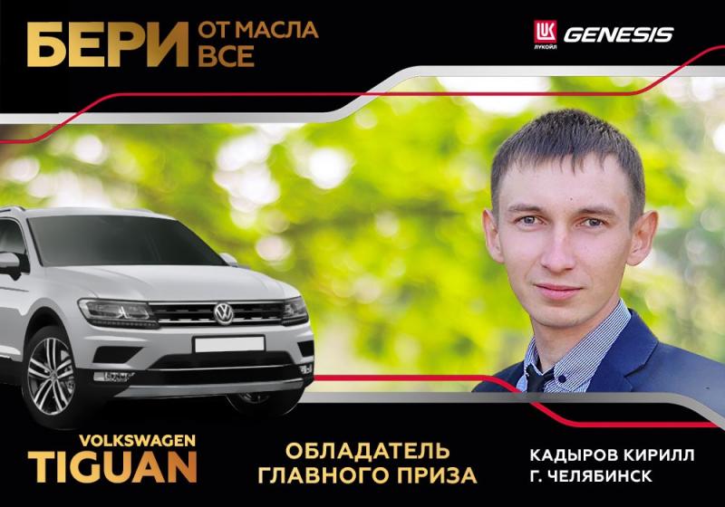 И уже есть свежие новости! В конце ноября по итогам федеральной акции «ЛУКОЙЛ» «Бери от масла всё» покупатель МаслоMart выиграл автомобиль! Кирилл Кадыров из Челябинска стал обладателем Volkswagen Tiguan.